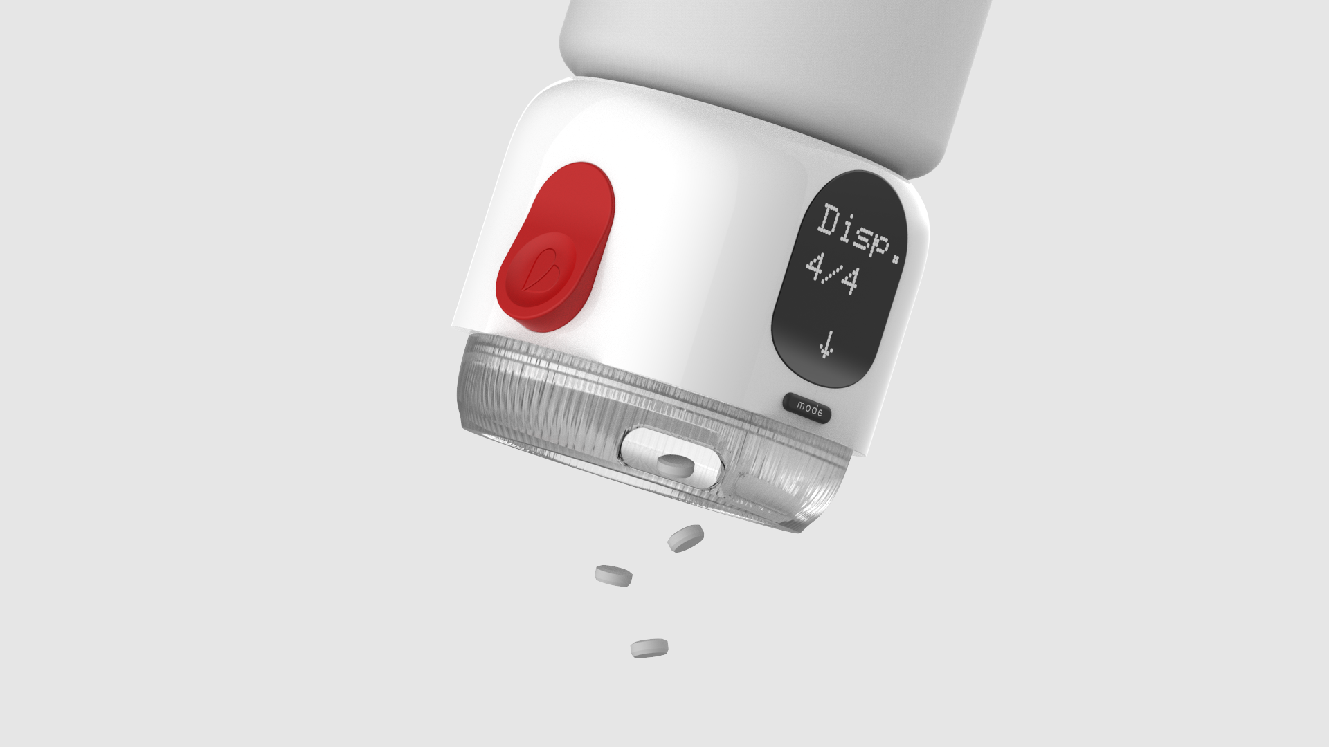 MediClicker is a smart, app-connected pill dispensing cap designed to screw directly onto standard medication bottles. By combining mechanical dosing precision with IoT functionality, the device ensures that tablets or micro-tablets are delivered in the right quantity, at the right time. Users receive mobile alerts when it’s time to take their dose, and dispense tablets one by one with a simple side button press—each pill counted and tracked through an integrated infrared sensor. The transparent pill collector doubles as both a visual cue and a hygienic dispenser tray.
